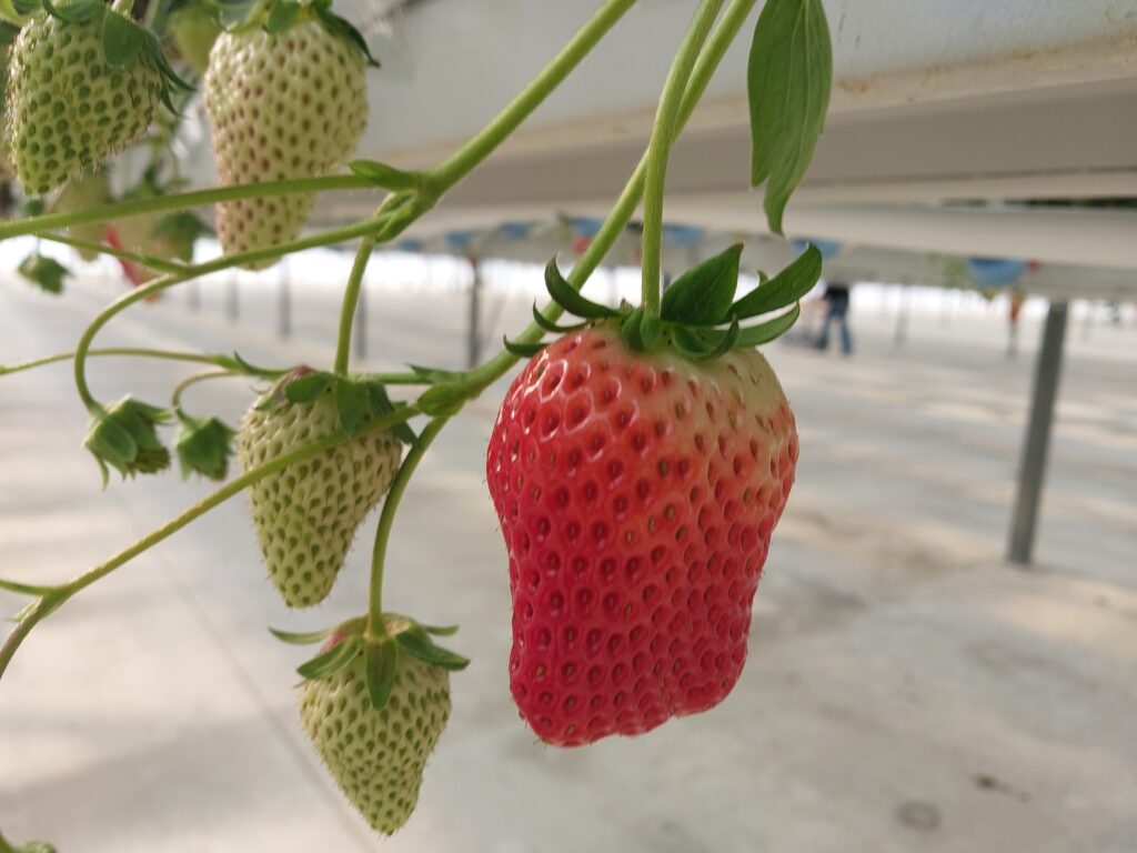 国内最大級の次世代型いちご農園「いちご空中農園いわた」は、豊富ないちごの品種が楽しめる!屈まなくてもいちご狩りができる最新鋭のいちご狩り園でした。
