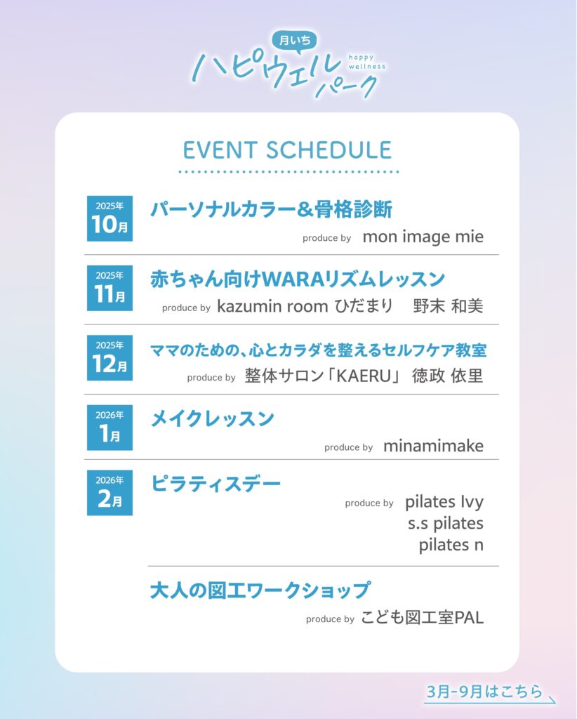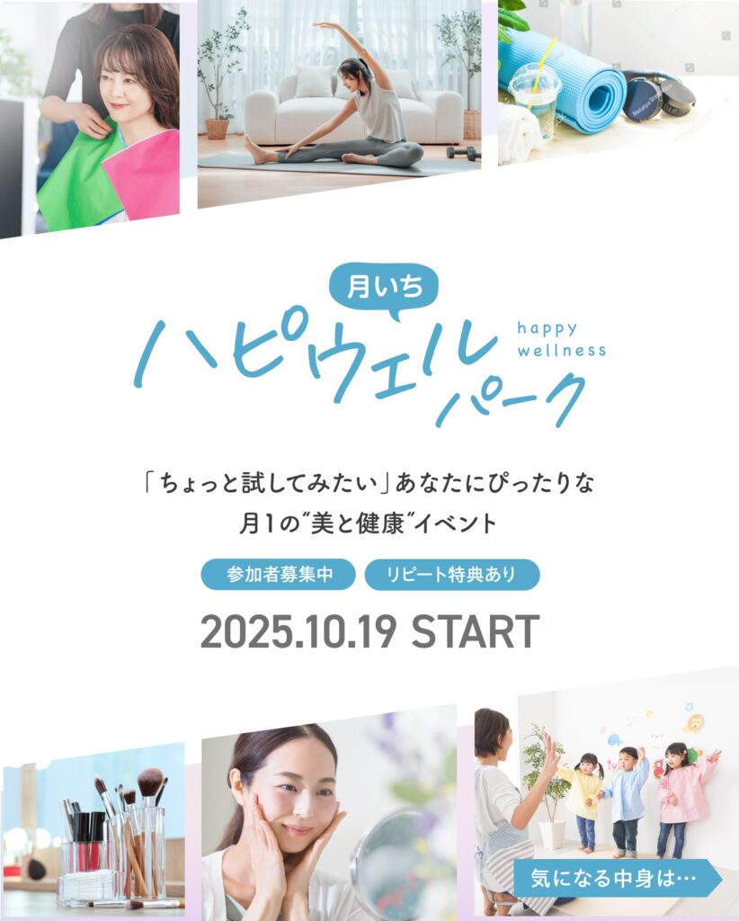 これまでご利用いただいた皆さま、そして地域の皆さまへの感謝の気持ちを込めて、2025年10月より月1回のウェルネスイベント「ハピウェルパーク」をスタートいたします!