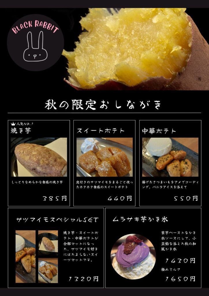 お店のおすすめは、体と心を癒してくれるミックスハーブティー。4種類のブレンドハーブティーの中からその日の気分でお選びください。また「かき氷」も人気のメニュー。夏は毎日ほぼ満席だったフワフワの氷に手作りシロップのかき氷がこの季節でも食べることができます。さらに、秋の限定メニューとしてサツマイモを使ったスイーツも充実。女心を分かっていますね(笑)