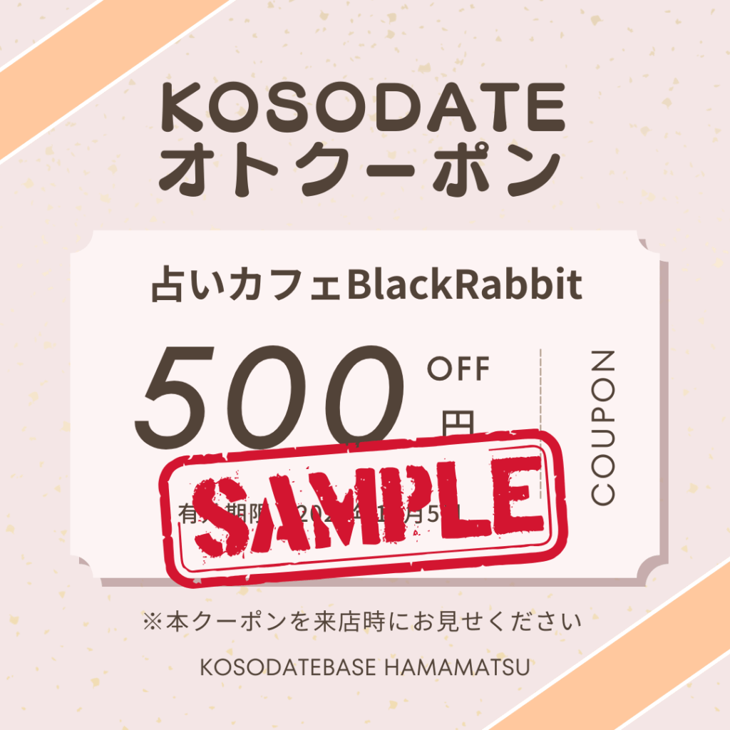 KOSODATEBASE浜松の公式ラインにお友達登録いただくと、KOSODATEオトクーポン協賛店のクーポンがご利用いただけます。