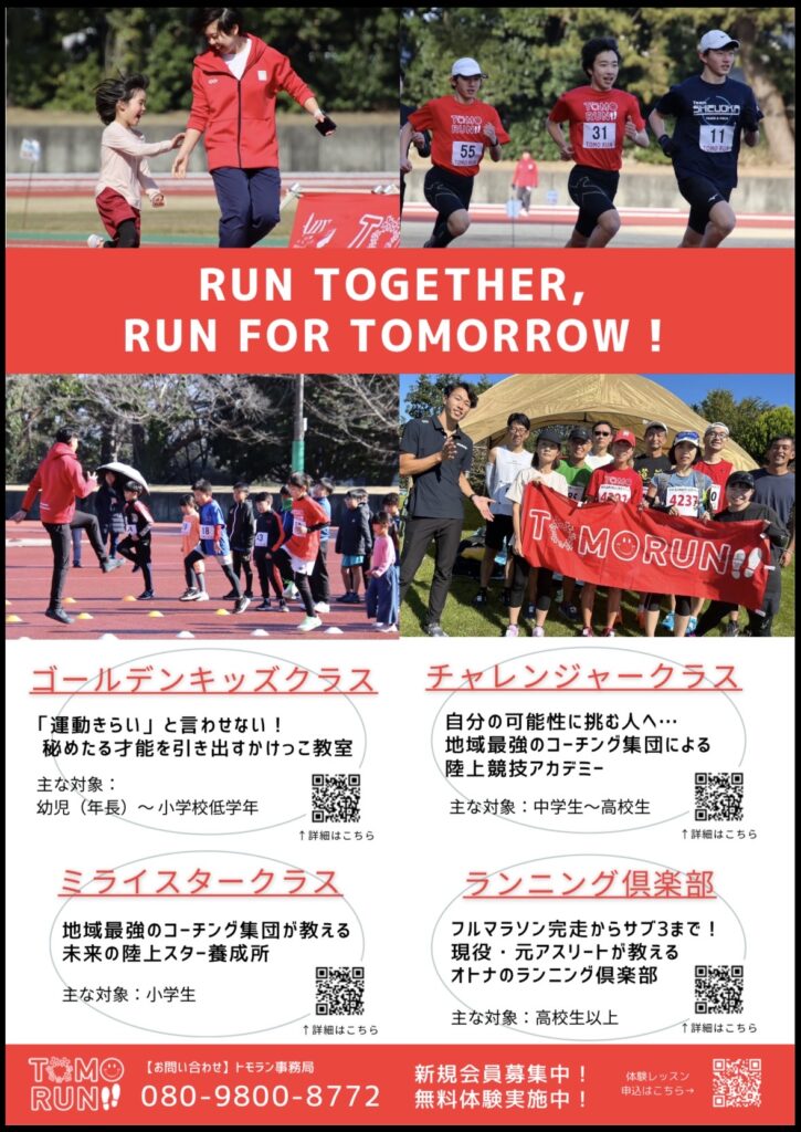 クラブチームは、「Run Together, Run for Tomorrow!」をスローガンに、幼児〜高齢者まで各年代に合わせた教室を展開しています。