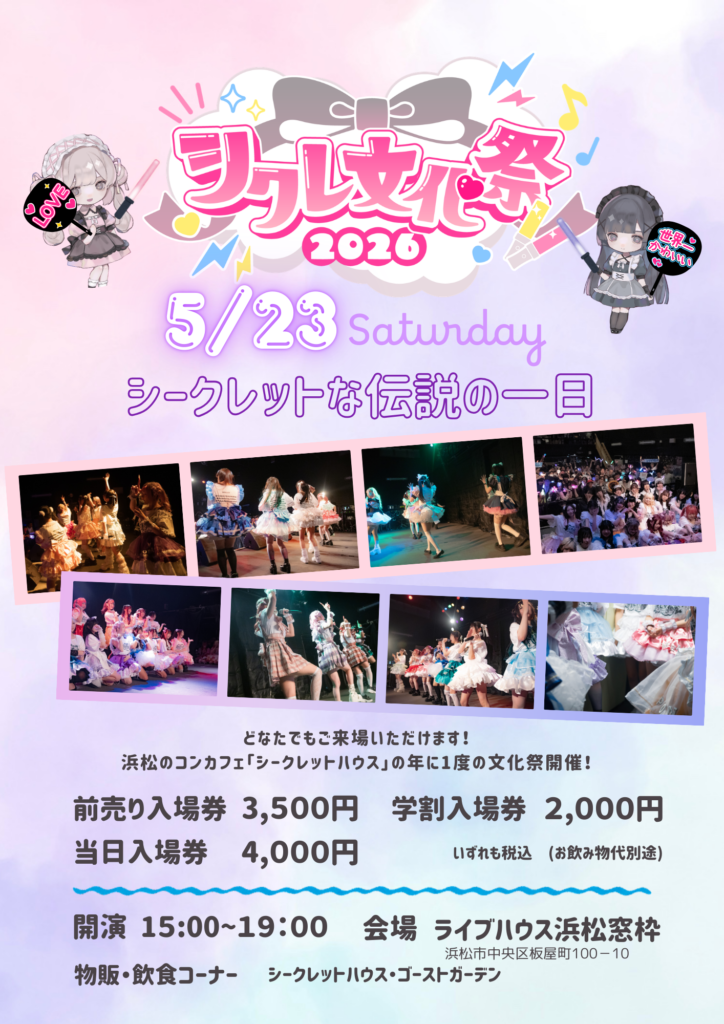 そんな「シークレットハウス」が主催する年に1度のライブイベント「シクレ文化祭」が今年も開催されます。